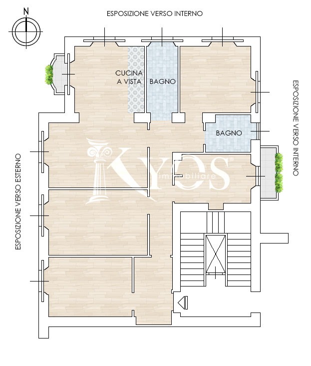 Ci accoglie un ampio ingresso, un grande soggiorno/ pranzo con cucina a vista e balcone , quattro camere di cui una con balcone, doppi servizi entrambi finestrati.