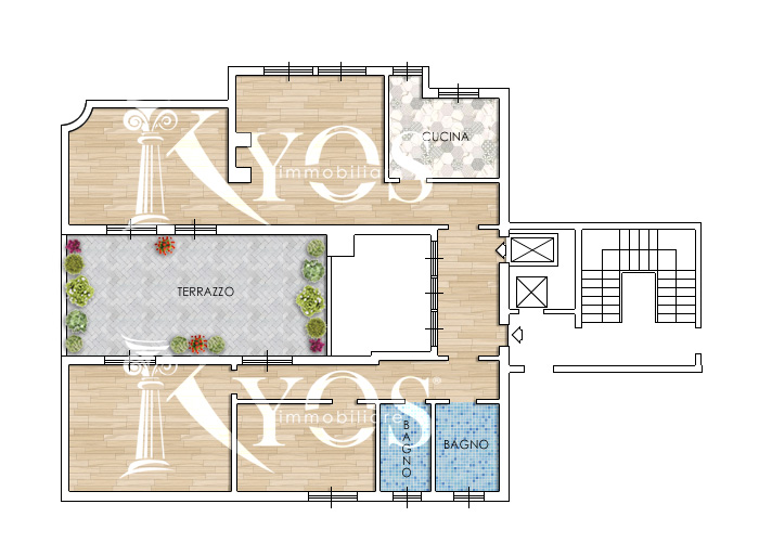 Punto di forza è il terrazzo, collocato nel cuore della casa, che rappresenta un vero e proprio prolungamento della zona giorno, ideale per momenti di relax e convivialità. Doppio ingresso, soggiorno, sala da pranzo, cucina completamente arredata, una camera da letto matrimoniale, una camera da letto singola, doppi servizi e ampio terrazzo.