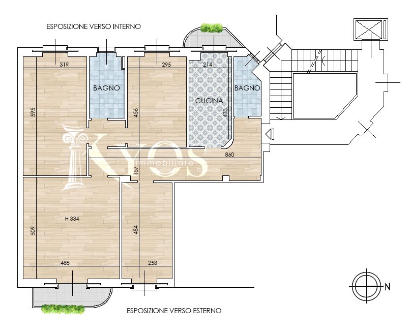 L’appartamento ha una doppia esposizione ed è ubicato al quarto e penultimo piano.
