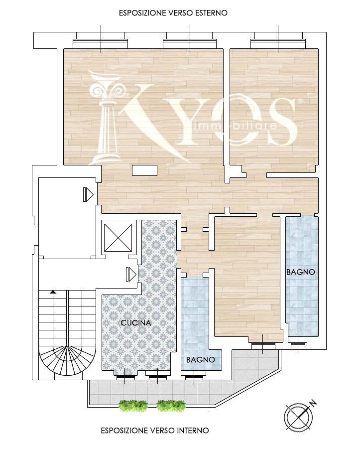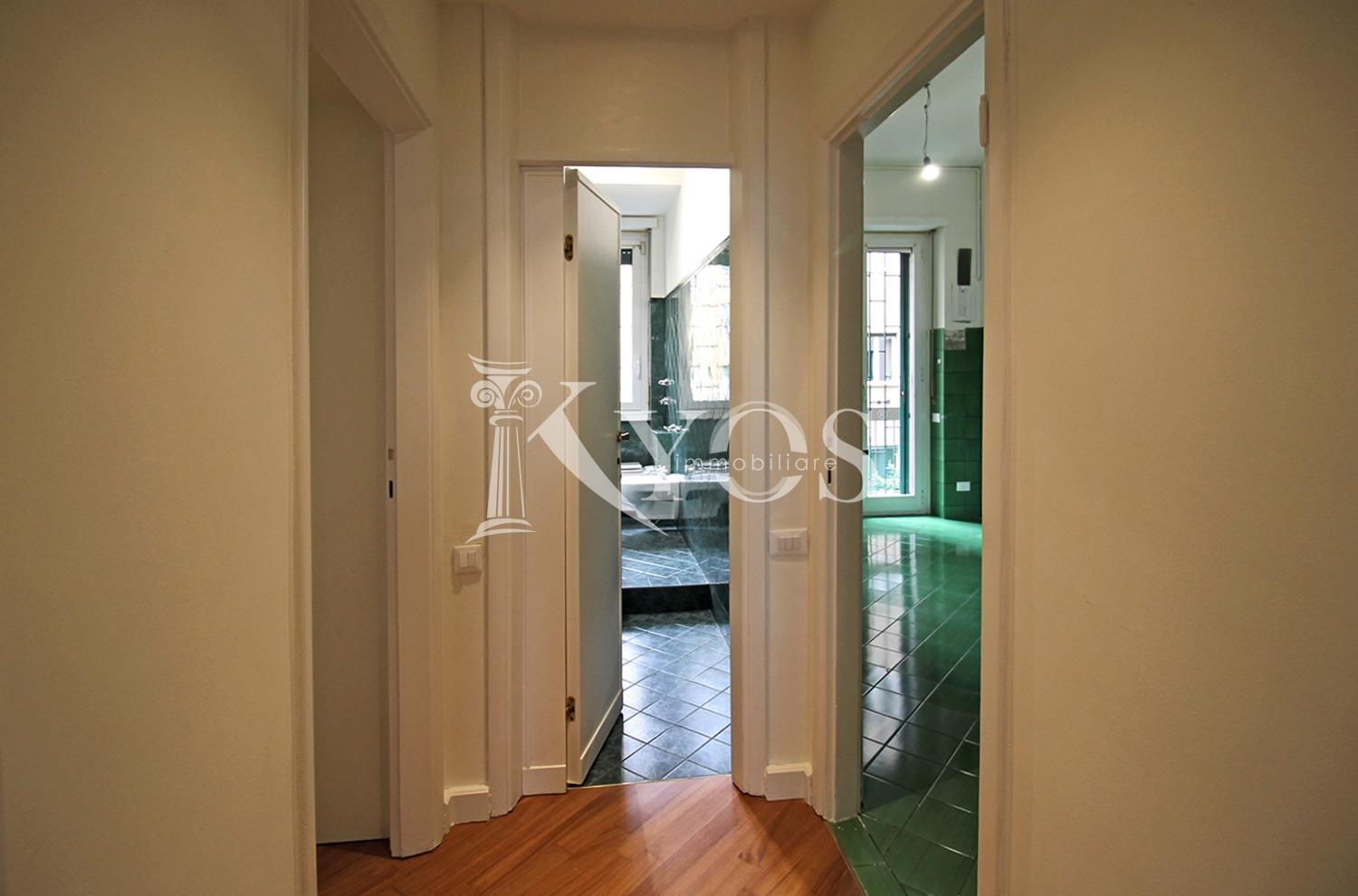 La casa è composta da ingresso padronale e ingresso di servizio, un ampio e luminoso salone, una camera matrimoniale e una camera singola. La cucina è abitabile e dotata di un ampio balcone. Completano la proprietà i doppi servizi e una cantina di pertinenza.