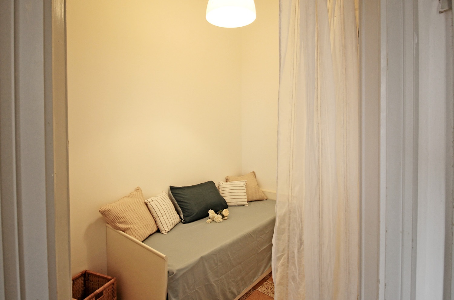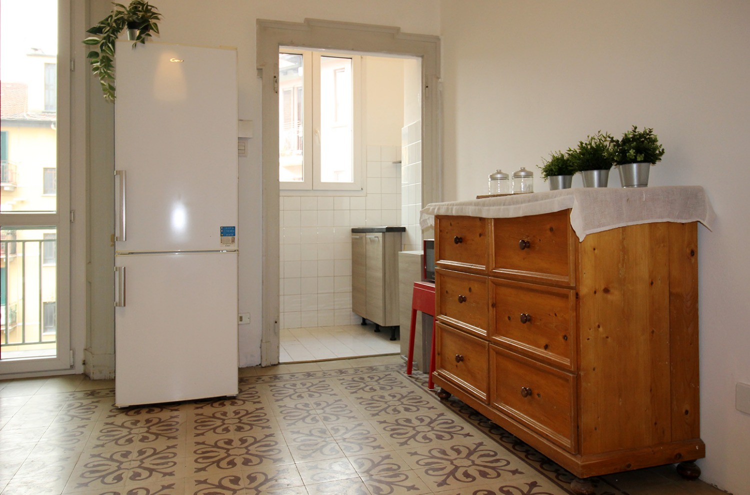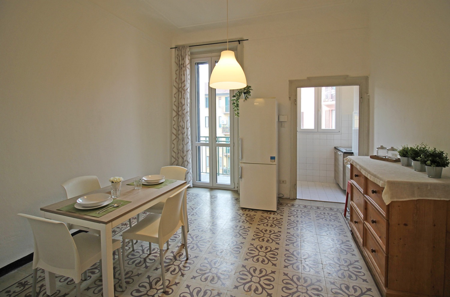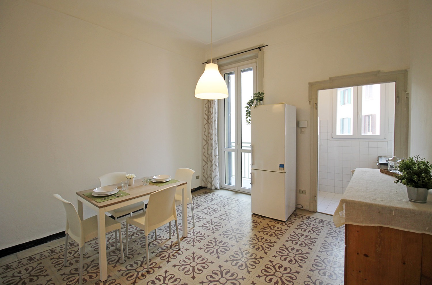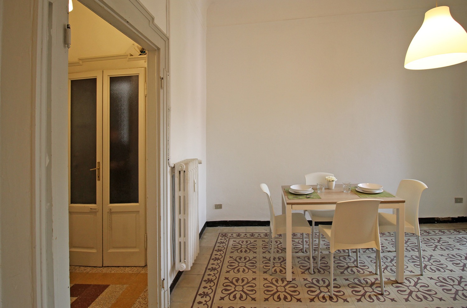 Gli interni conservano il carattere autentico delle finiture originali tipiche degli edifici storici: le cornici alle porte interne, le cementine e la generosa altezza dei soffitti contribuiscono a creare un’atmosfera accogliente e di impatto. La posizione al piano intermedio, unita all’affaccio interno esposto a ovest e alla tranquillità di una via poco trafficata, assicura un ambiente silenzioso e ben illuminato nelle ore pomeridiane.