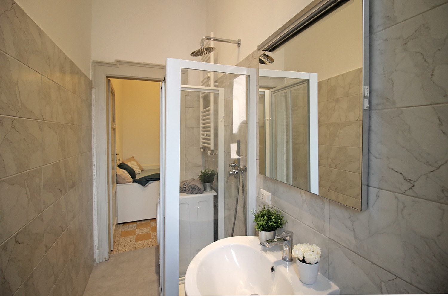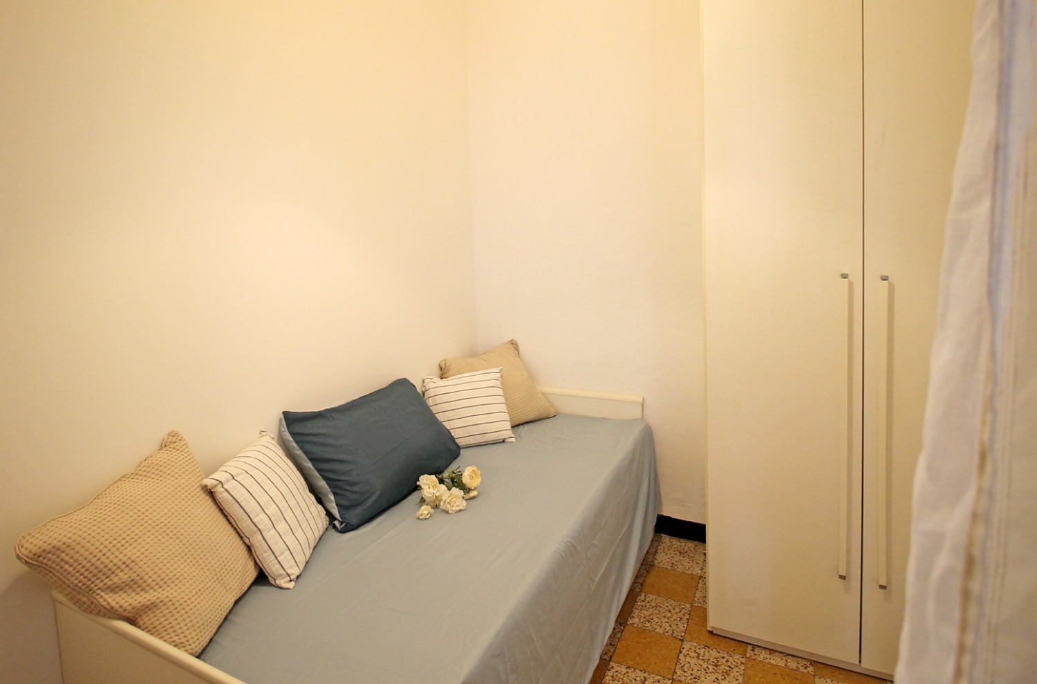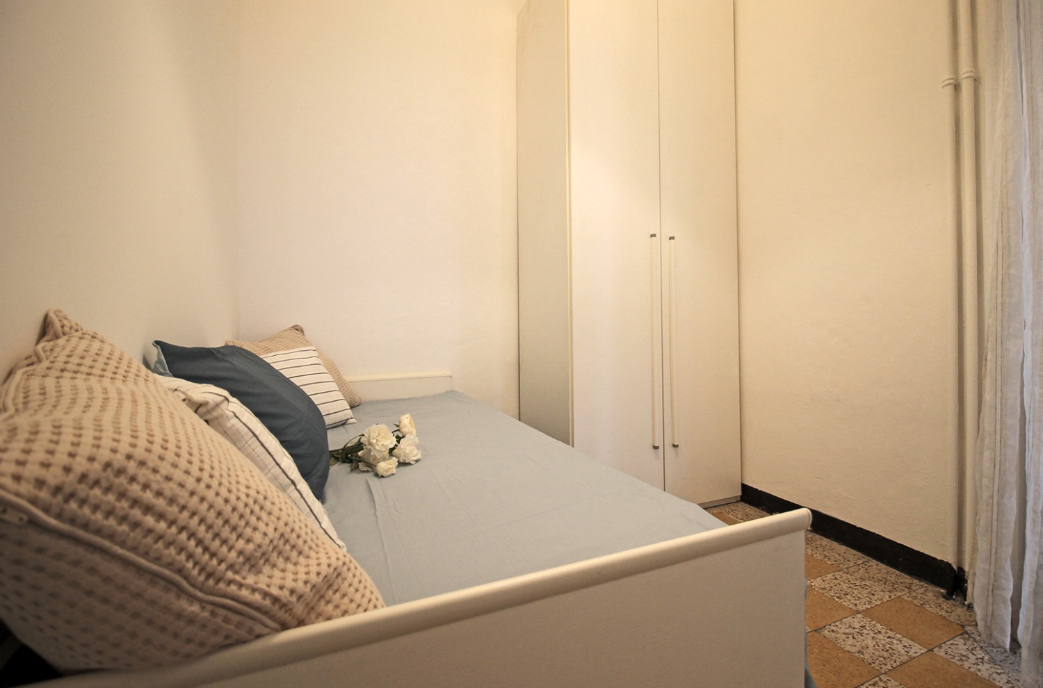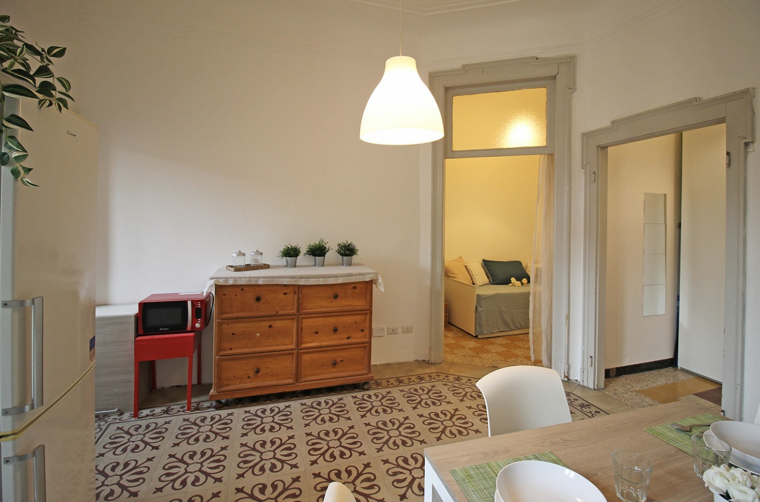 Gli interni conservano il carattere autentico delle finiture originali tipiche degli edifici storici: le cornici alle porte interne, le cementine e la generosa altezza dei soffitti contribuiscono a creare un’atmosfera accogliente e di impatto. La posizione al piano intermedio, unita all’affaccio interno esposto a ovest e alla tranquillità di una via poco trafficata, assicura un ambiente silenzioso e ben illuminato nelle ore pomeridiane.