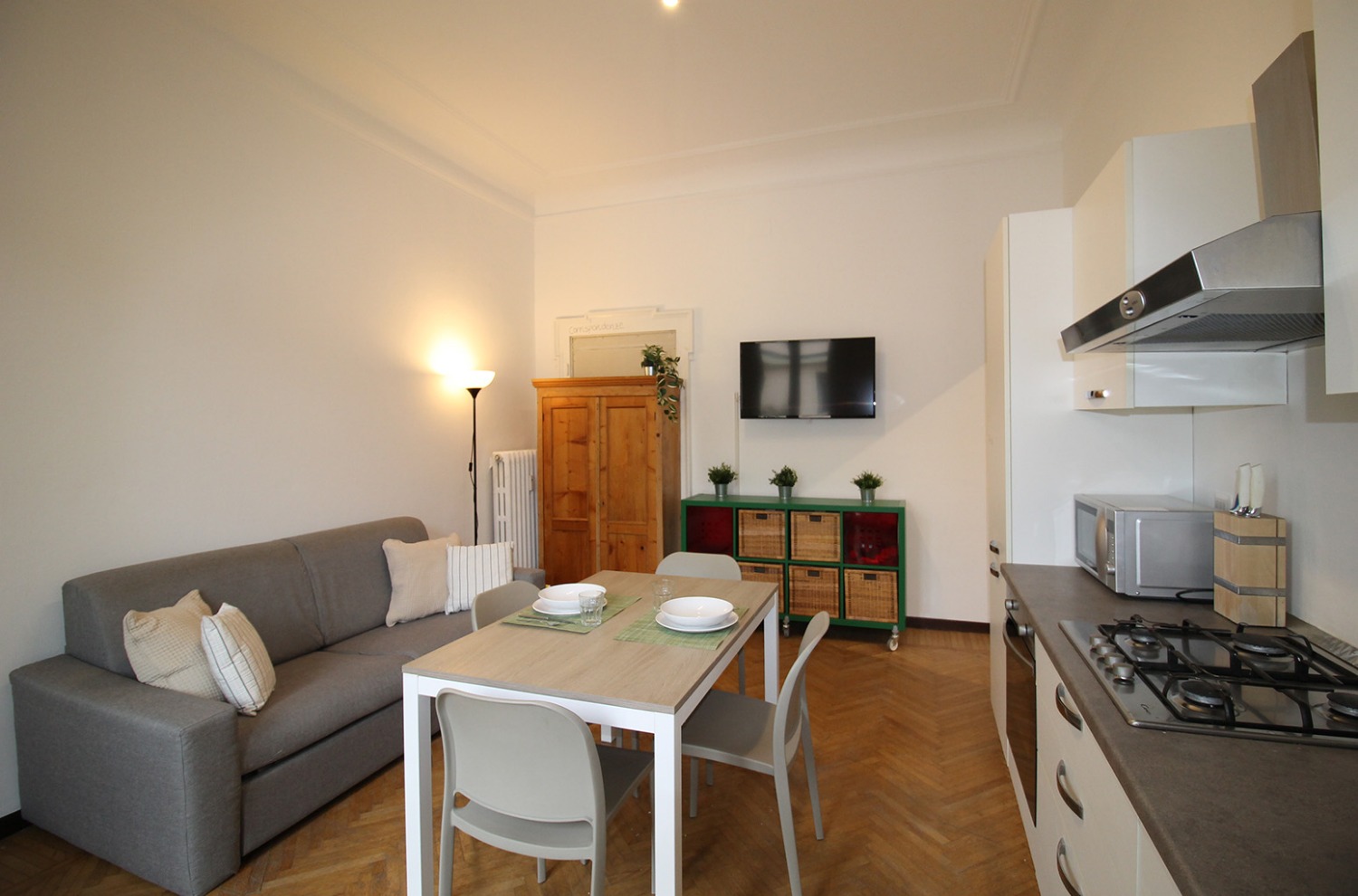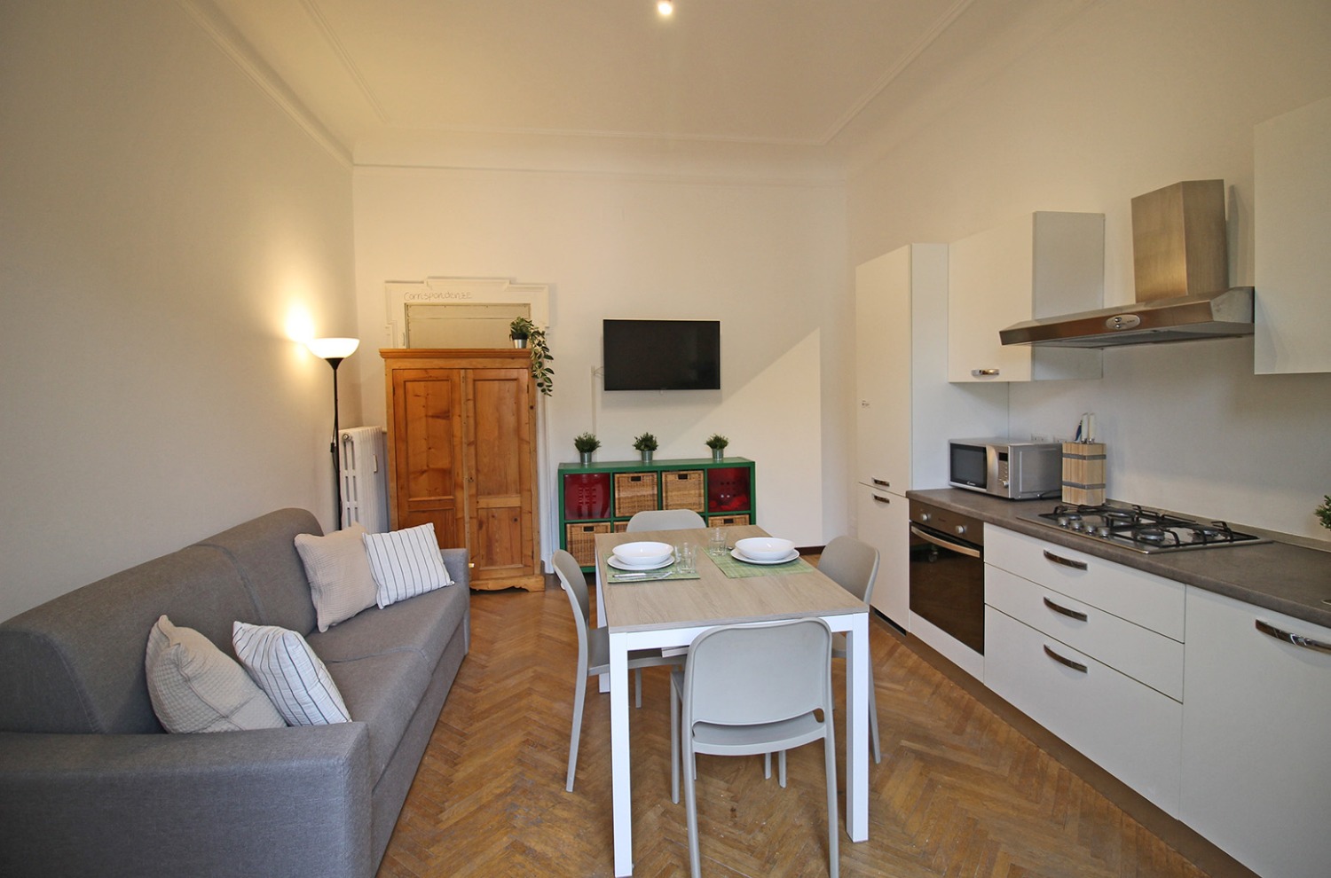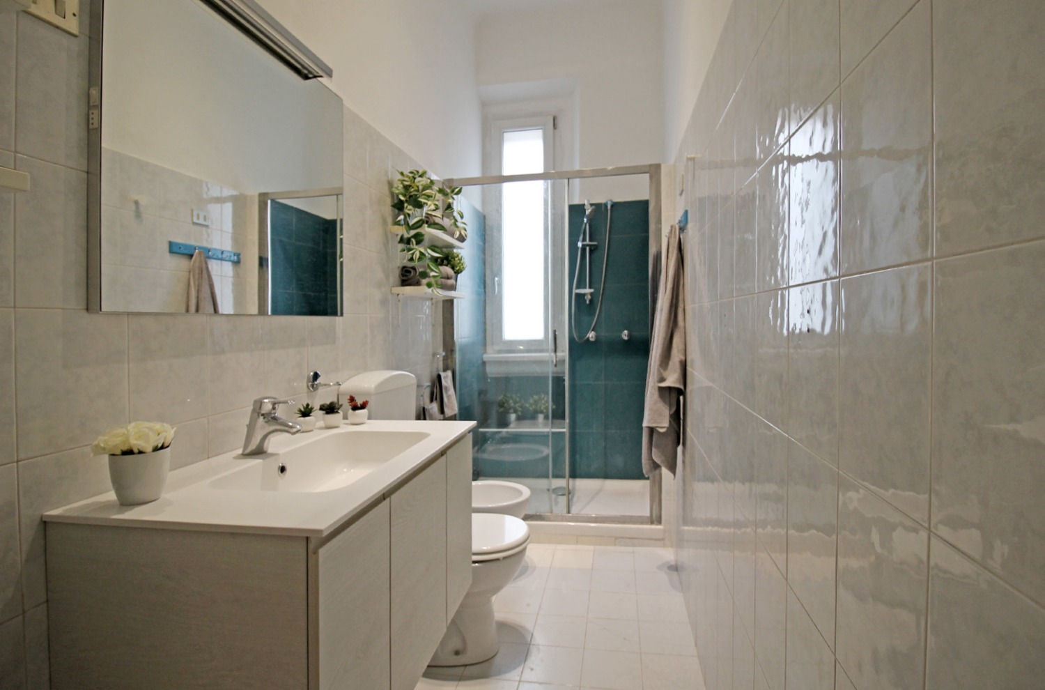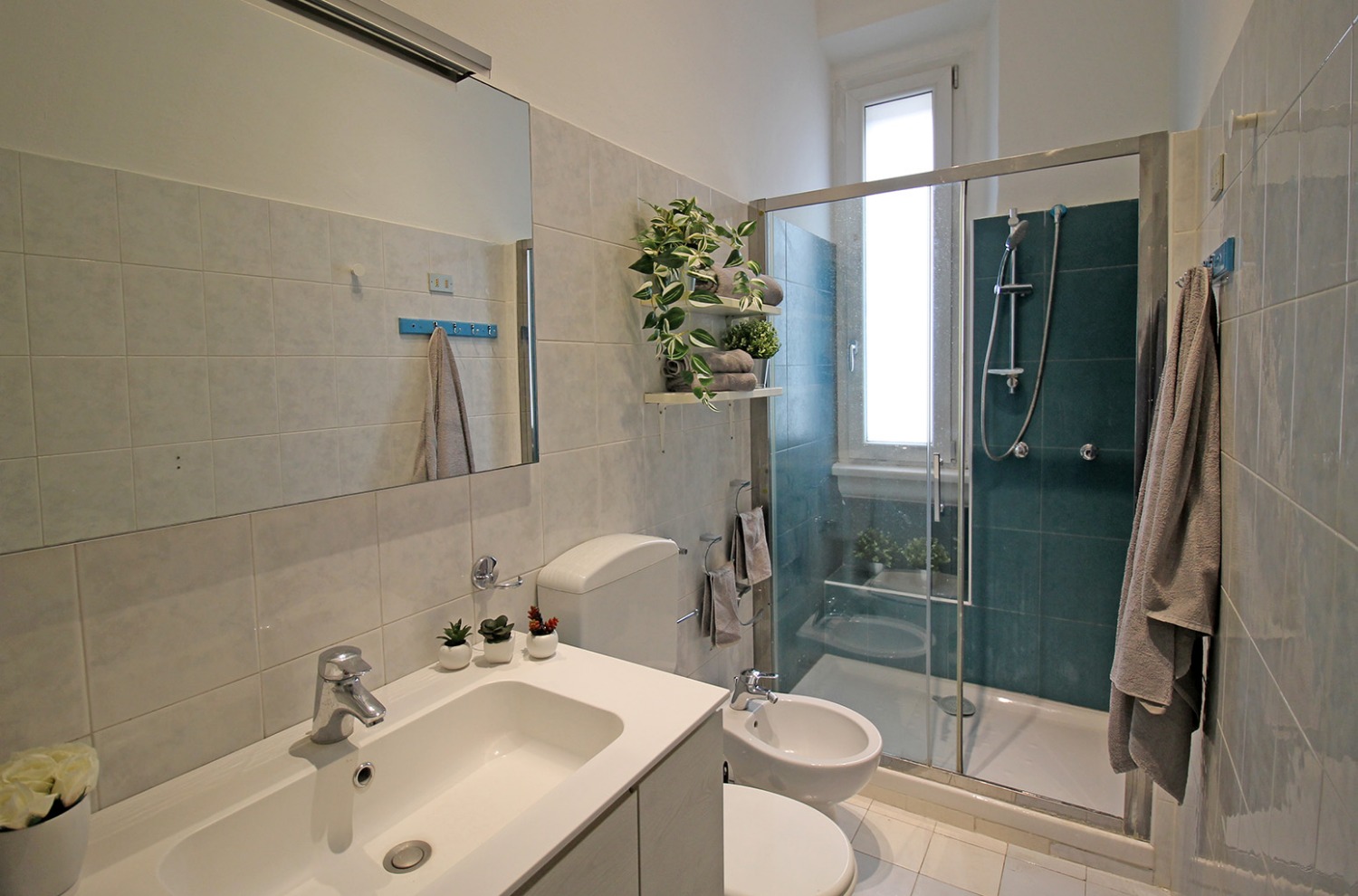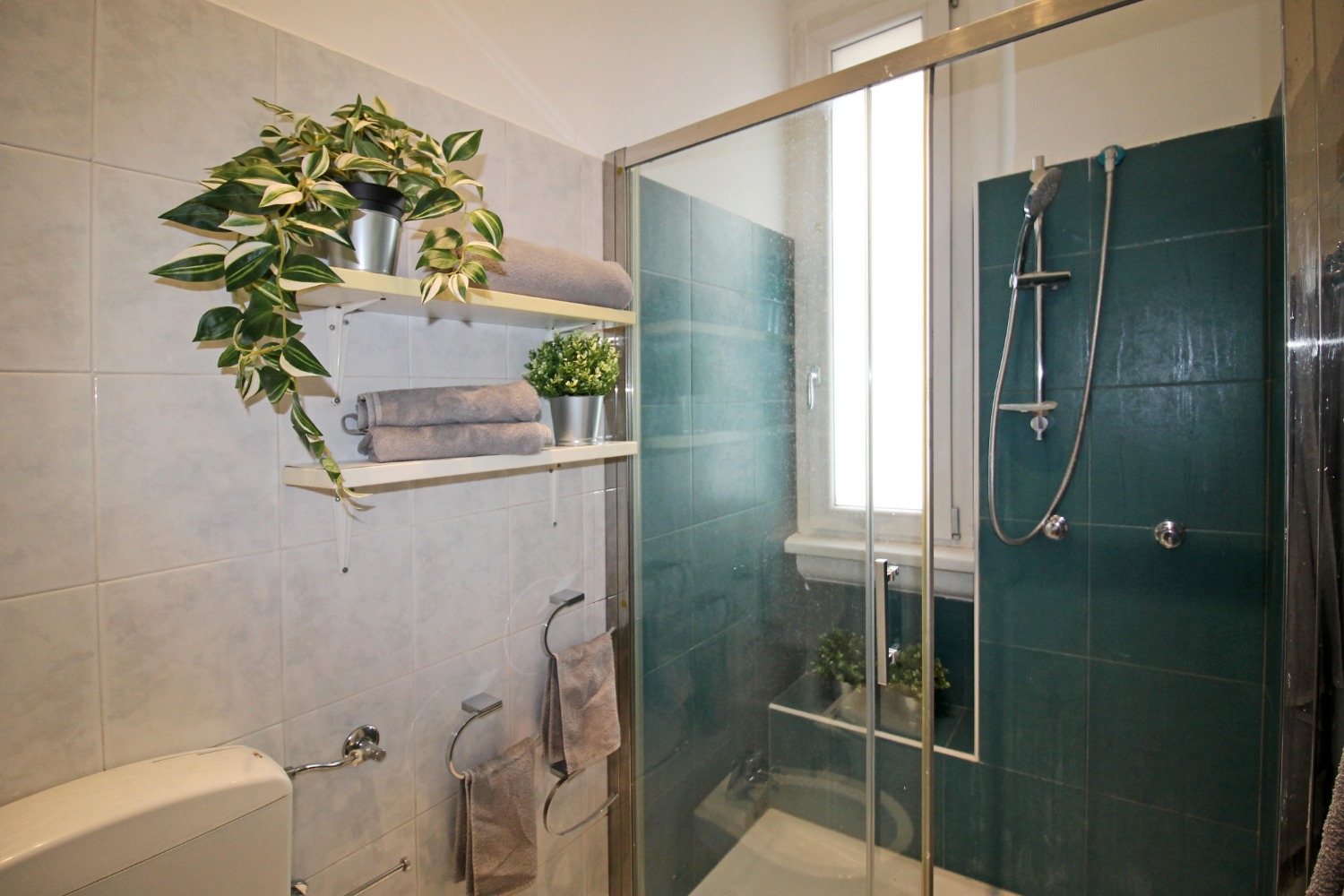 L’ingresso introduce da un lato ad una piacevole zona giorno, accogliente e ben proporzionata, con cucina a vista e accesso diretto al primo balcone. Un corridoio ben organizzato disimpegna la zona notte, composta da un bagno finestrato con box doccia e da due camere da letto, una matrimoniale e una singola, entrambe servite da una comoda balconata. Completano la proprietà un ampio ripostiglio e una cantina di pertinenza.