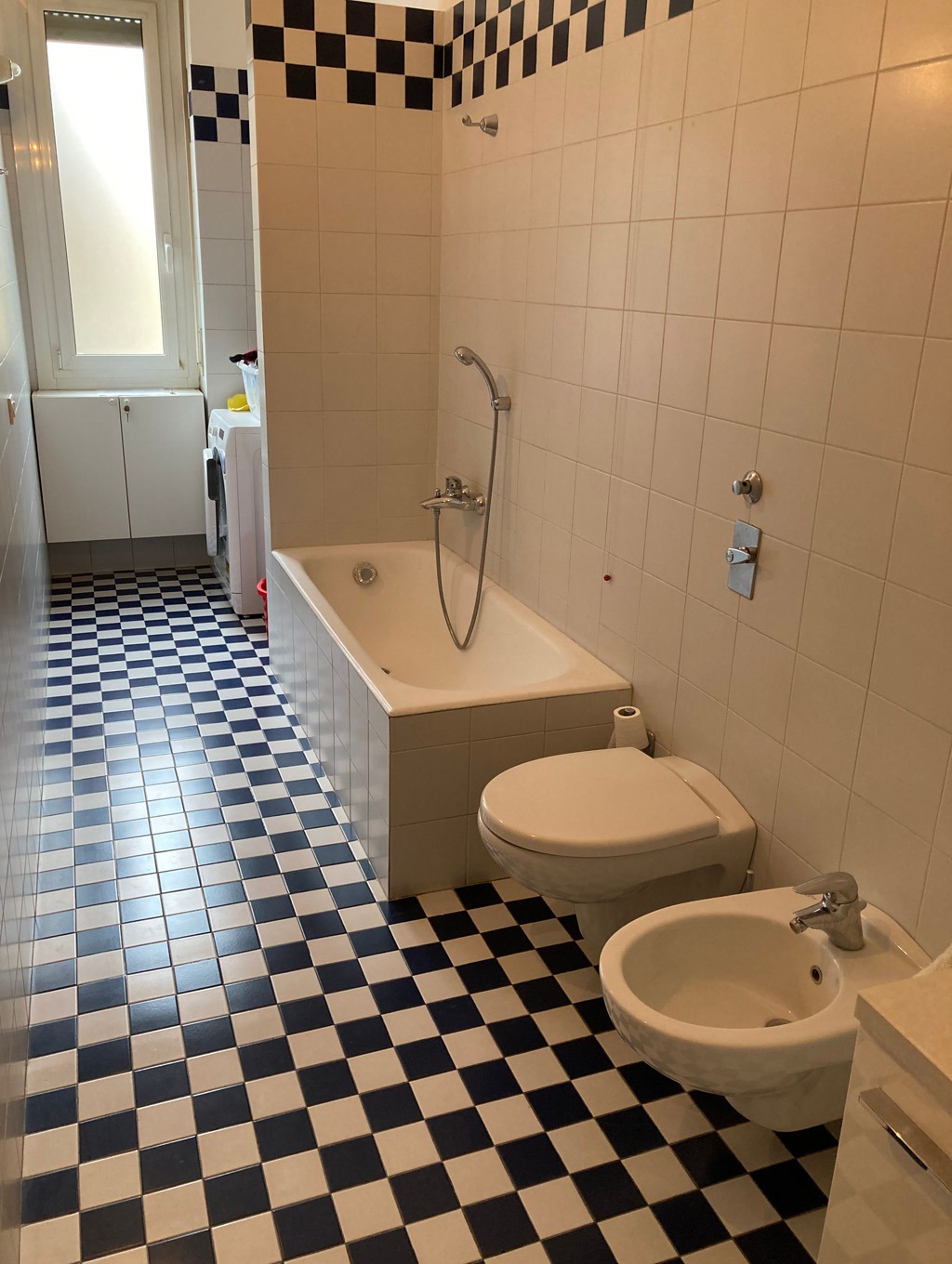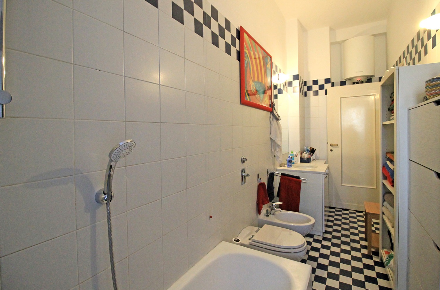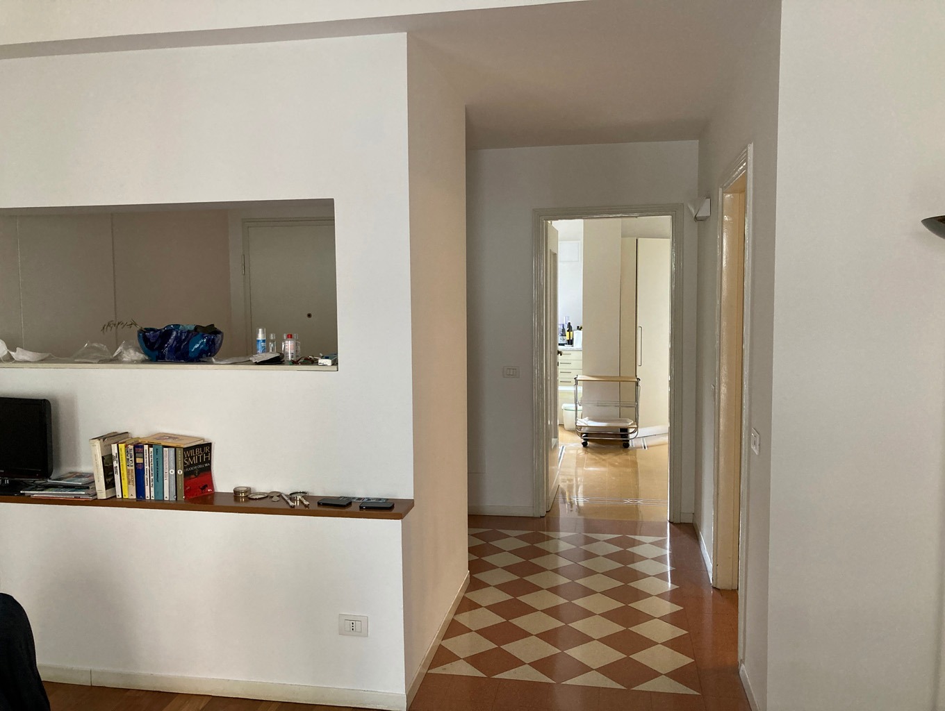 L'appartamento, attualmente composto da un ingresso (dotato di ripostiglio per cappotti), un ampio soggiorno , cucina abitabile, tre camere da letto e doppi servizi, è una vera "tela bianca".
