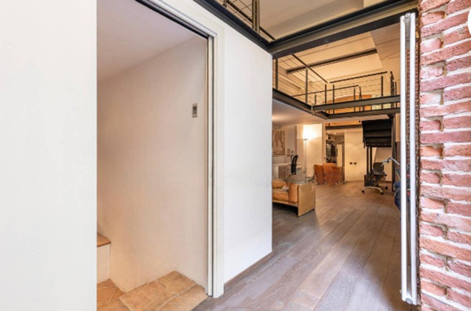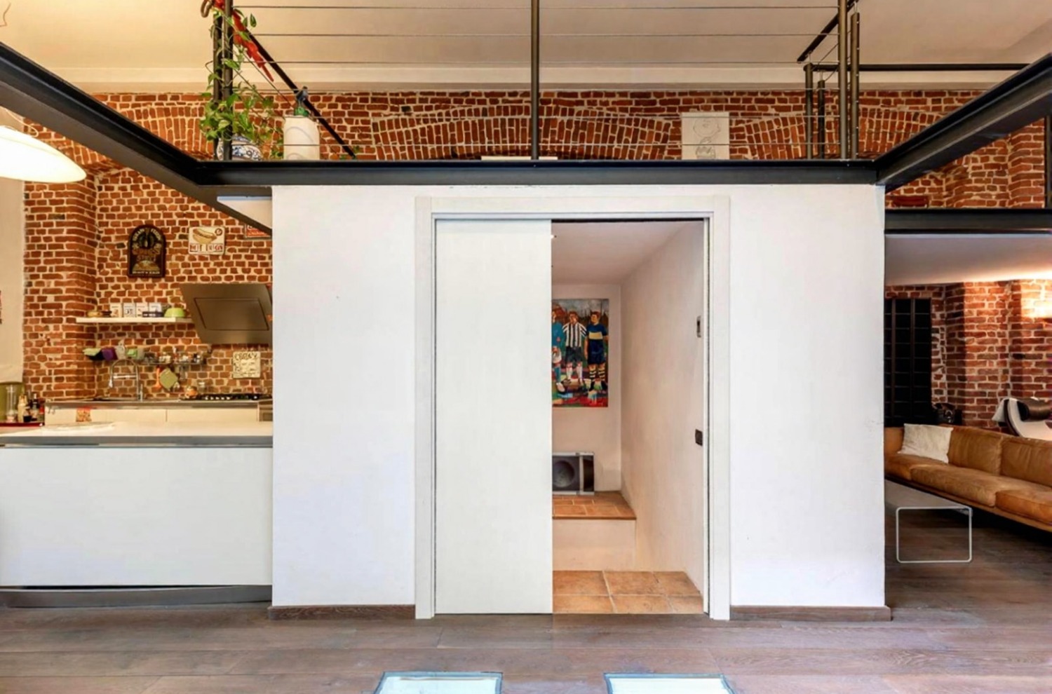 Le altezze importanti ospitano un ampio soppalco che affaccia sulla zona living, ideale per chi ama gli spazi aperti e la continuità architettonica tipica dei Loft.