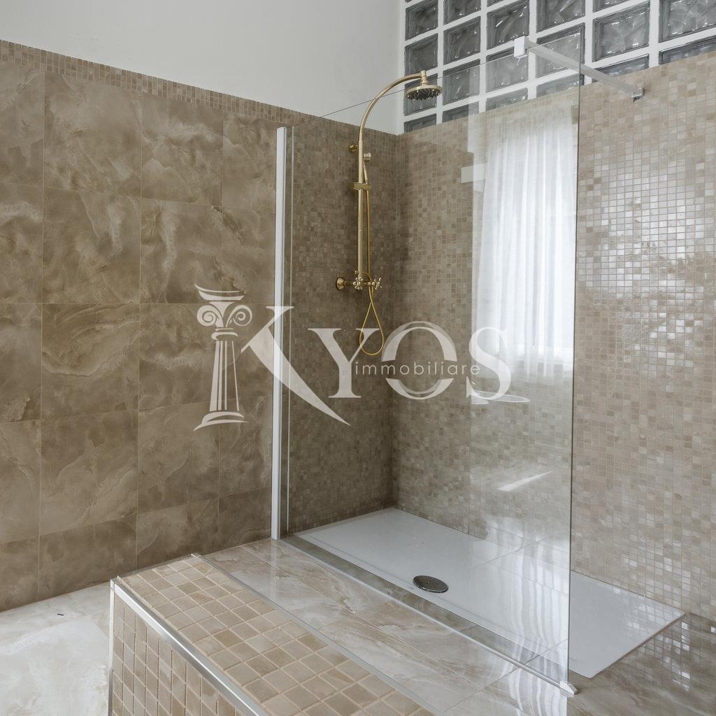 Questa esclusiva unità residenziale ci accoglie con un doppio ingresso, salone doppio con possibilità di ospitare anche la zona pranzo, cucina abitabile, tre camere matrimoniali oltre camera di servizio in dependance, tre bagni padronali, due bagni di servizio e stireria. Cantina di pertinenza.