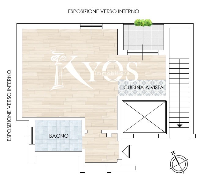 Completa l'unità un terrazzino loggiato che regala una vista panoramica.