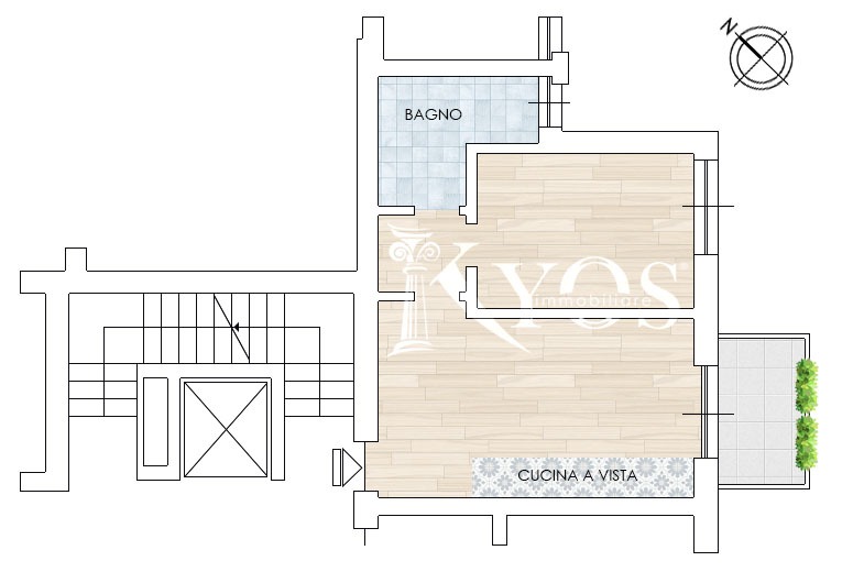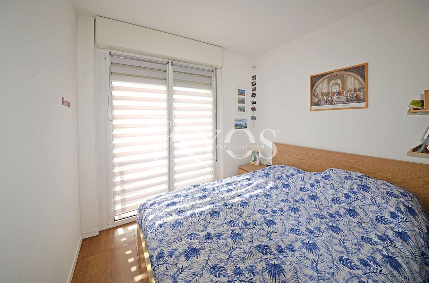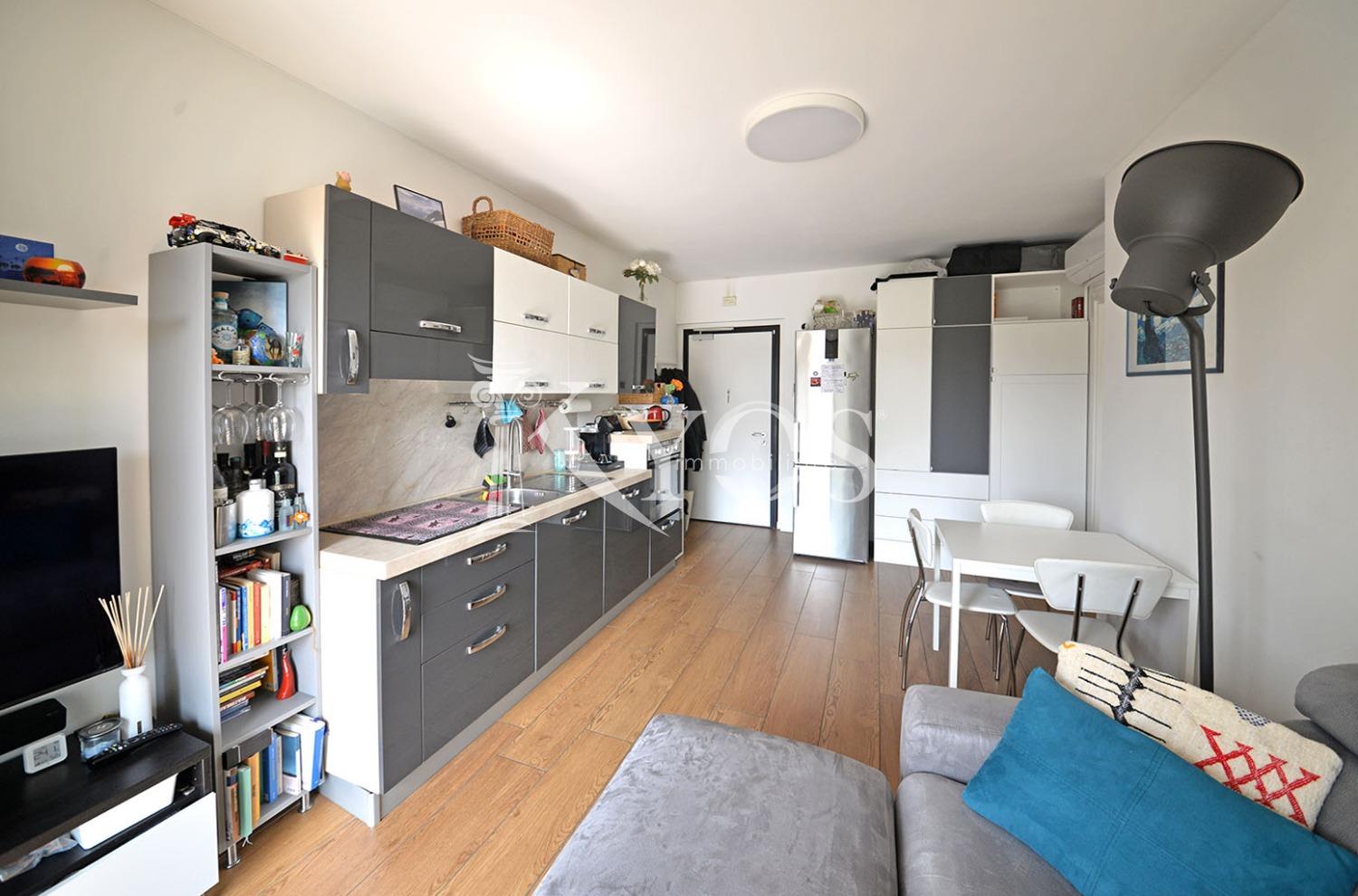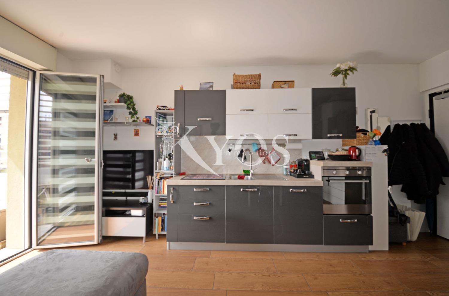 L’appartamento si caratterizza per una distribuzione interna estremamente efficiente, pensata per ridurre al minimo gli spazi di passaggio e valorizzare ogni metro quadrato disponibile. L’ingresso si apre direttamente sulla zona giorno, un ambiente luminoso con cucina a vista e accesso al balcone, che gode di un’esposizione interna e verso Sud. Un pratico disimpegno, sfruttato come area ripostiglio/lavanderia, conduce poi alla zona notte composta da una camera matrimoniale ben proporzionata e da un bagno finestrato, comodo e funzionale.