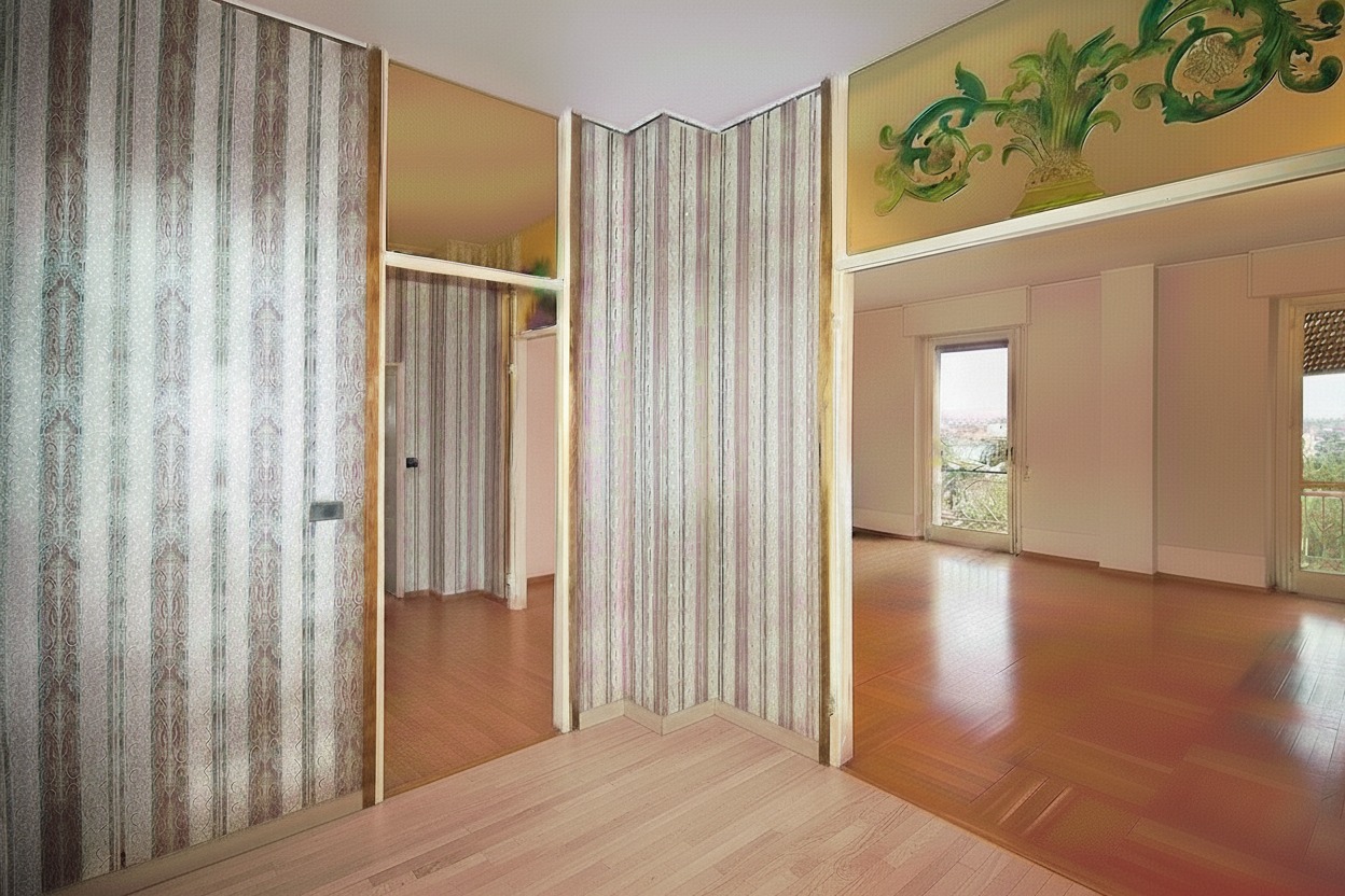 L’abitazione richiede interventi di aggiornamento, ma offre un grande potenziale progettuale: il layout attuale può essere preservato con un approccio conservativo oppure reinterpretato, come da studio già elaborato, per ottimizzare ulteriormente gli spazi – in particolare nella zona notte – e valorizzare le qualità dell’immobile.