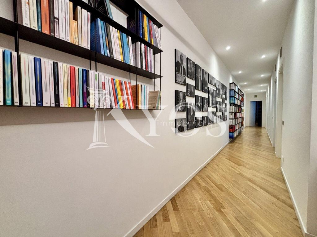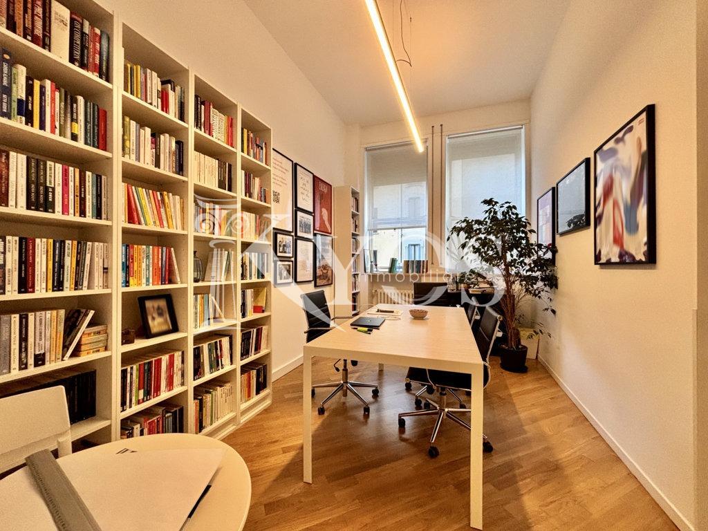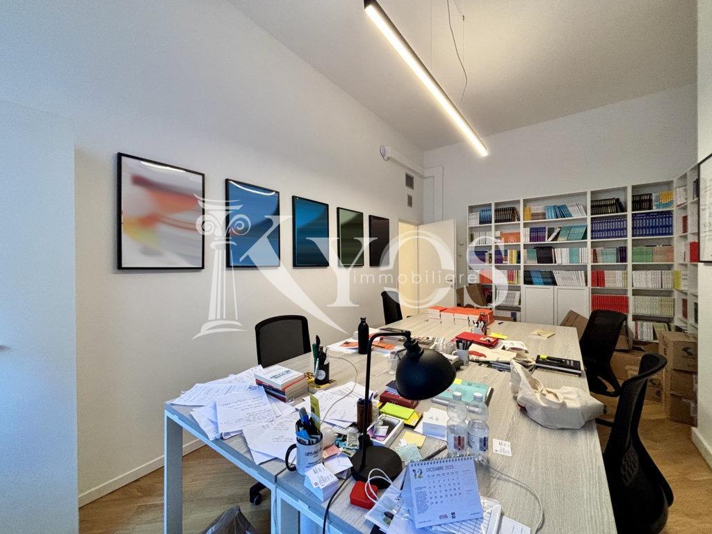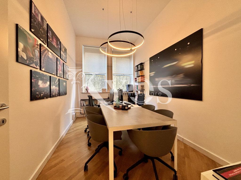 L’unità immobiliare rimane estremamente riservata grazie all’affaccio sul cortile interno, è composta da ingresso, sei locali, servizi e due pratiche cantine fruibili come deposito/archivio. L’attuale disposizione interna rende l’immobile particolarmente interessante per studi professionali associati.