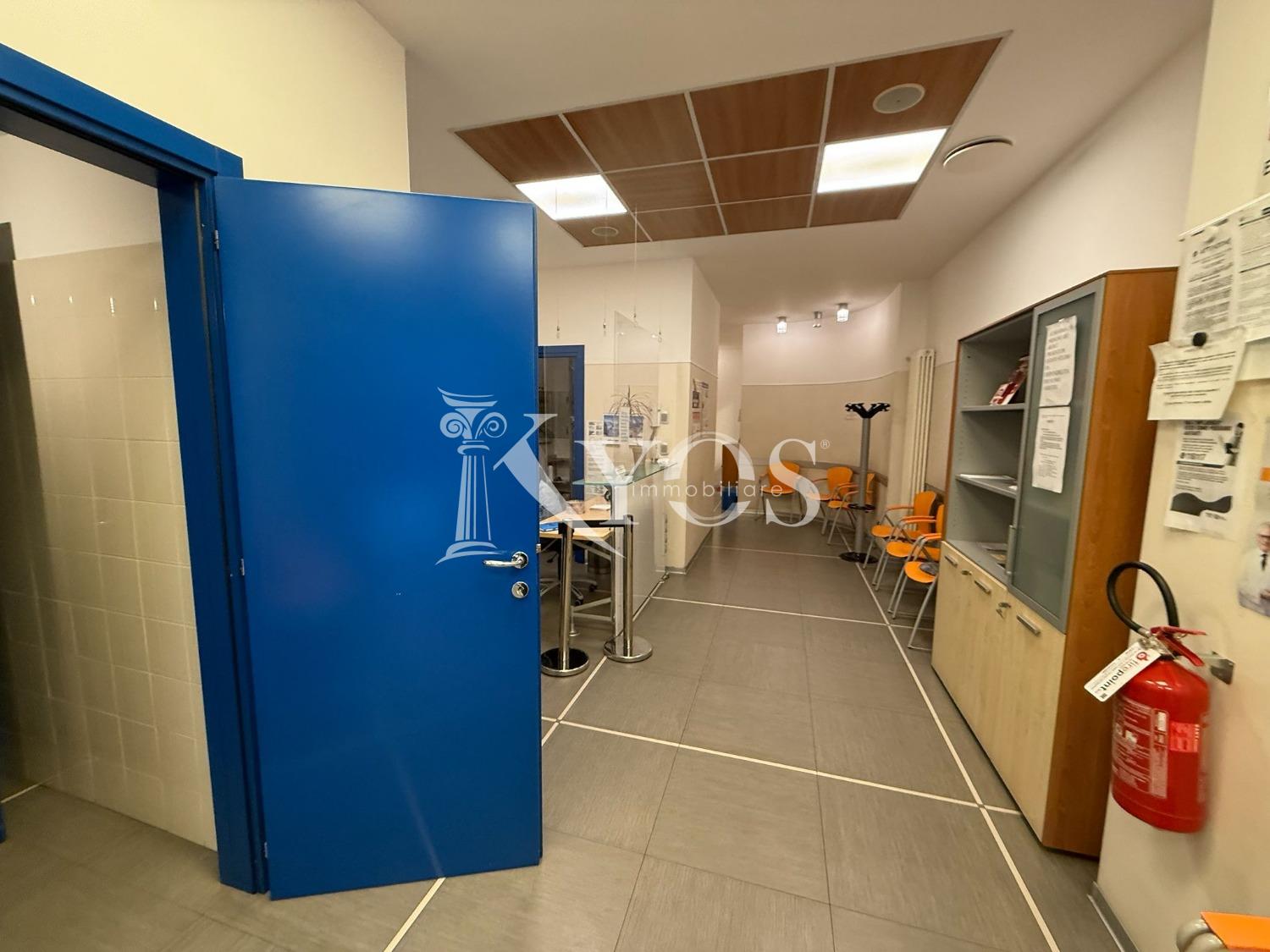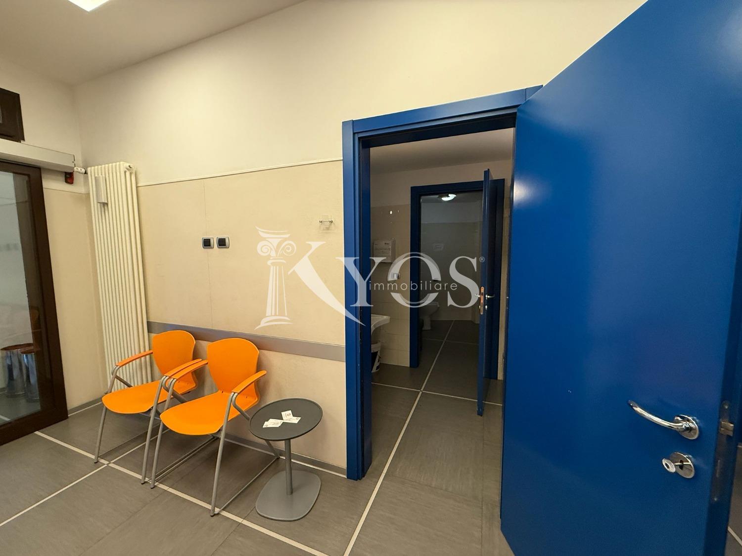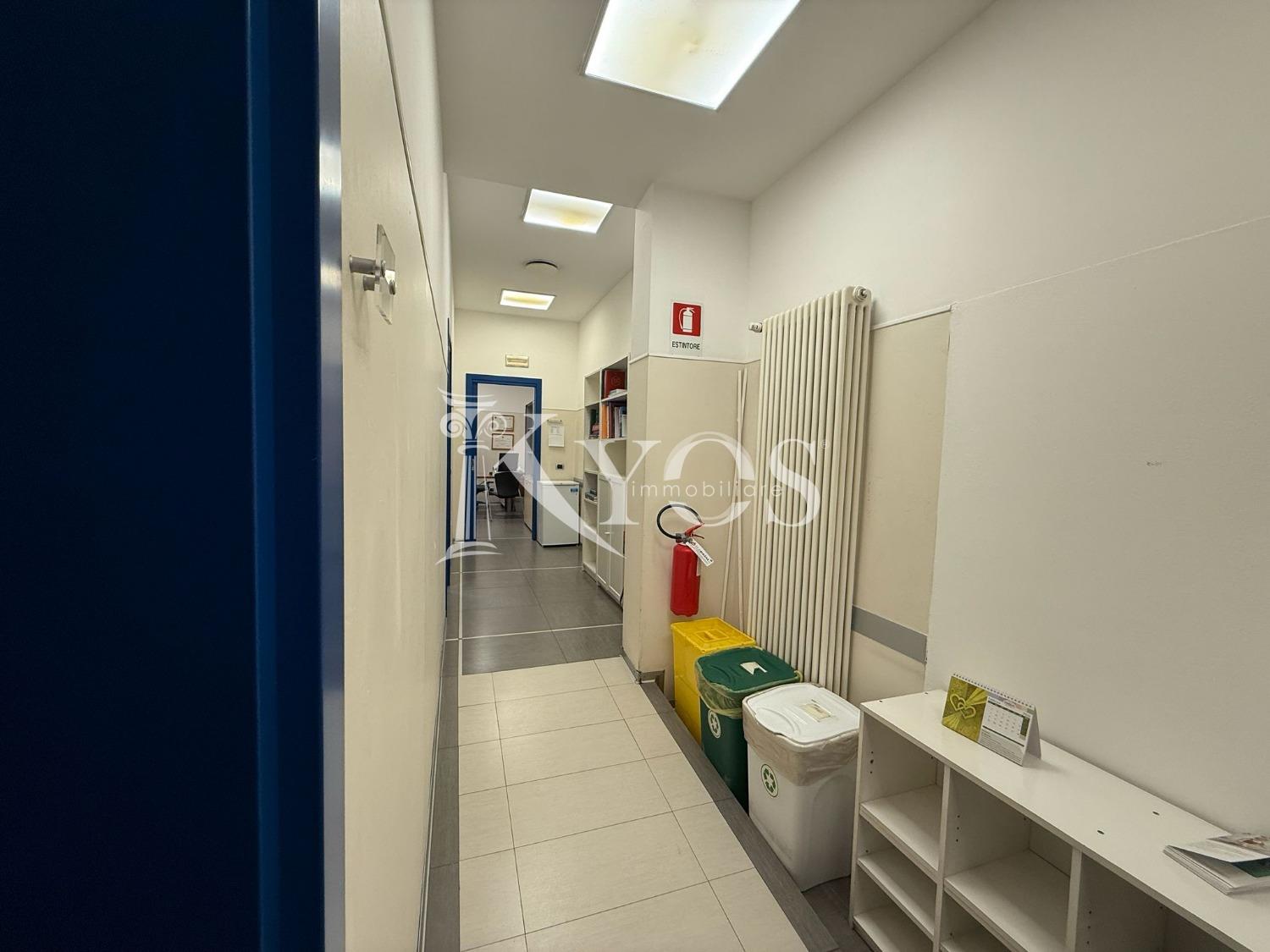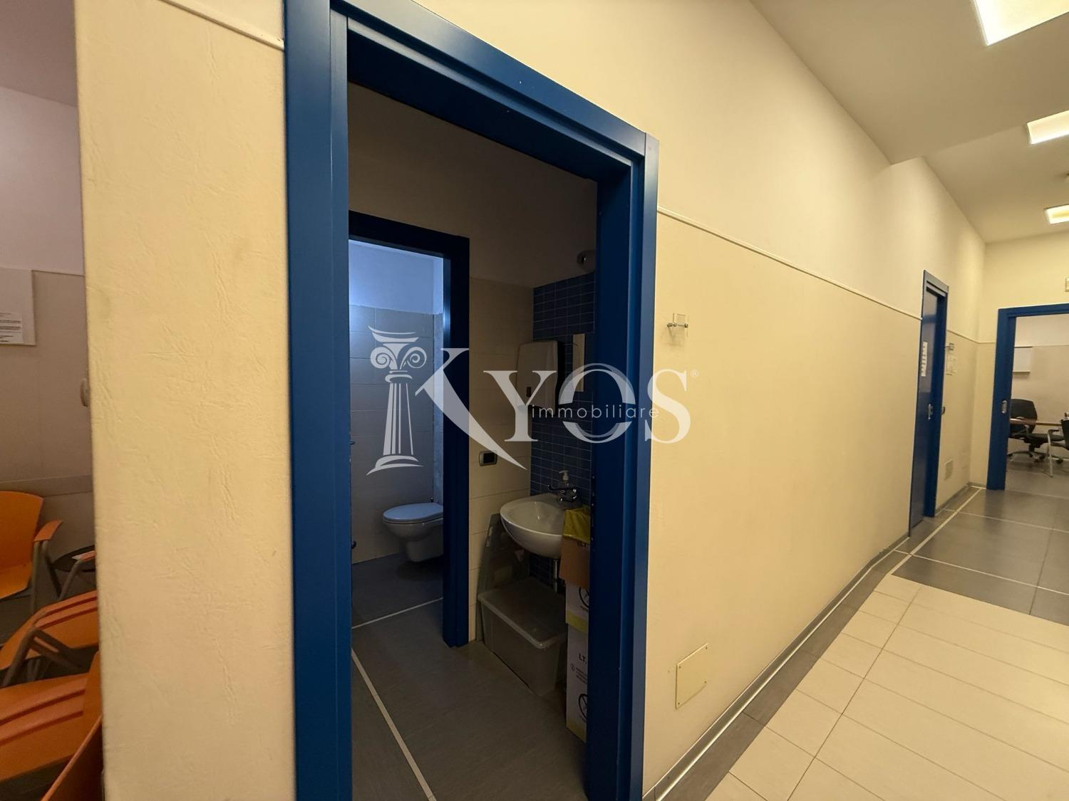 L’immobile è composto da cinque ampi locali, doppio ingresso, due bagni e un ripostiglio, con una distribuzione funzionale degli spazi che lo rende ideale per studi professionali e attività direzionali.